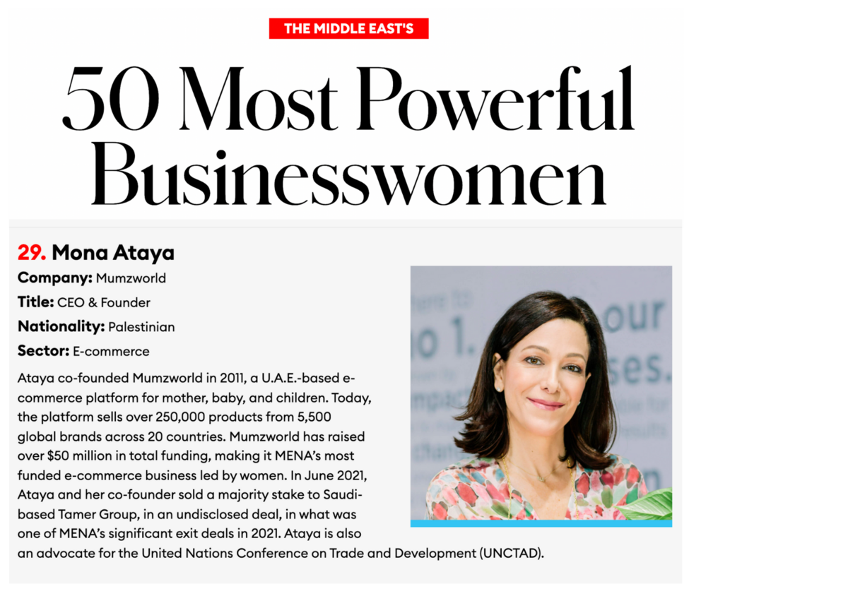 Mumzworld CEO, Mona Ataya, recognized in Forbes' list of most powerful women leaders recognized for building powerhouse brands.