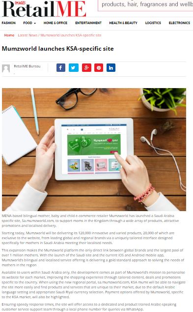 With Internet penetration rates in Bahrain, UAE and Qatar reaching 88%, 75% and 51.8% respectively and with women accounting for $246bn of the region's wealth, Mumzworld, the new e-commerce site dedicated to the mother, baby & child segment, is set to create a buzz with its exceptional customer-centric offering.