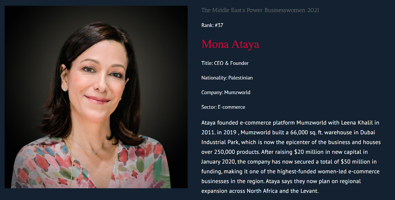 Mumzworld CEO, Mona Ataya was ranked #1 on the list of Top 10 Women Behind Middle Eastern Tech Brands 2020.
